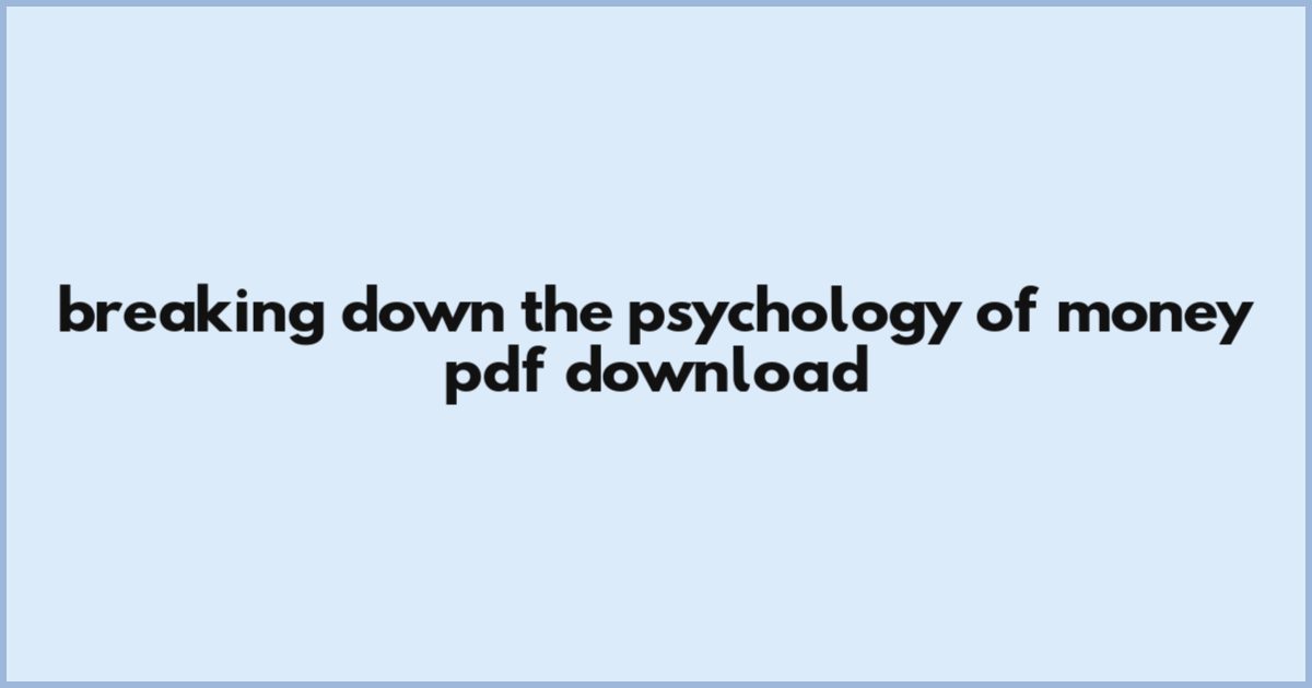 Breaking Down The Psychology Of Money Pdf Download