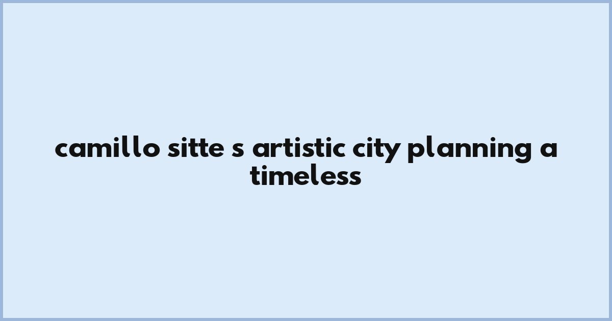 Camillo Sitte's Artistic City Planning: A Timeless Approach to Urban Design