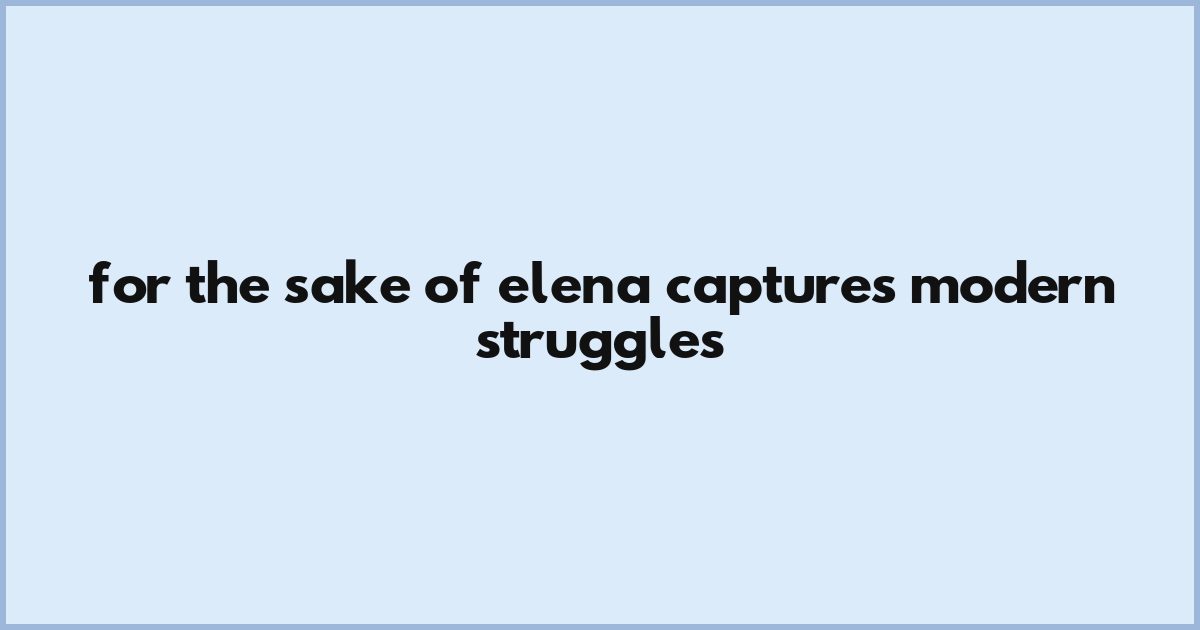 For The Sake Of Elena Captures Modern Struggles
