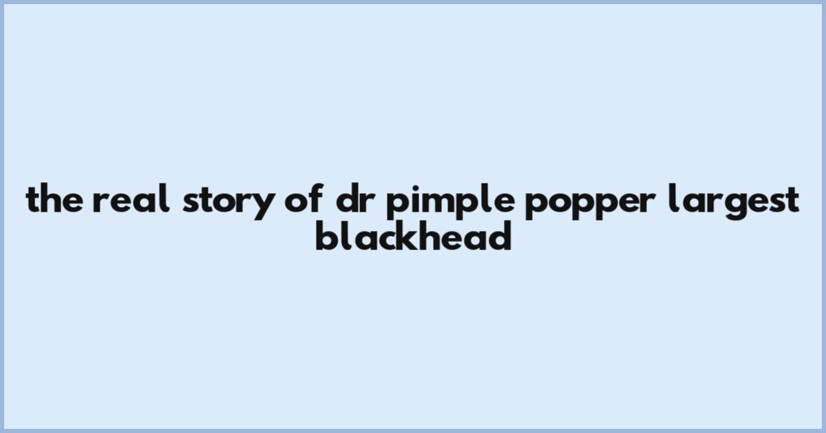 The Real Story Of Dr Pimple Popper Largest Blackhead