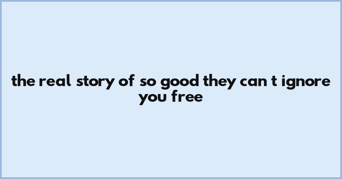 The Real Story Of So Good They Can't Ignore You Free