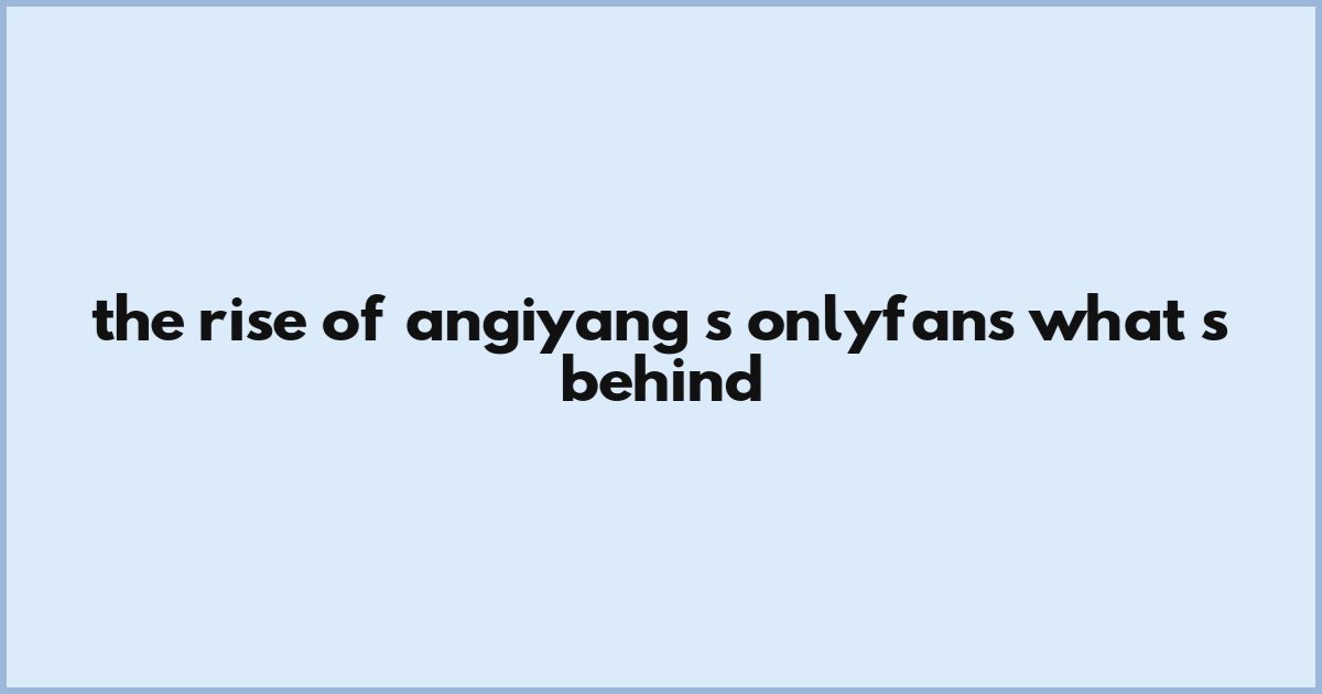 The Rise Of Angiyang’s OnlyFans: What’s Behind