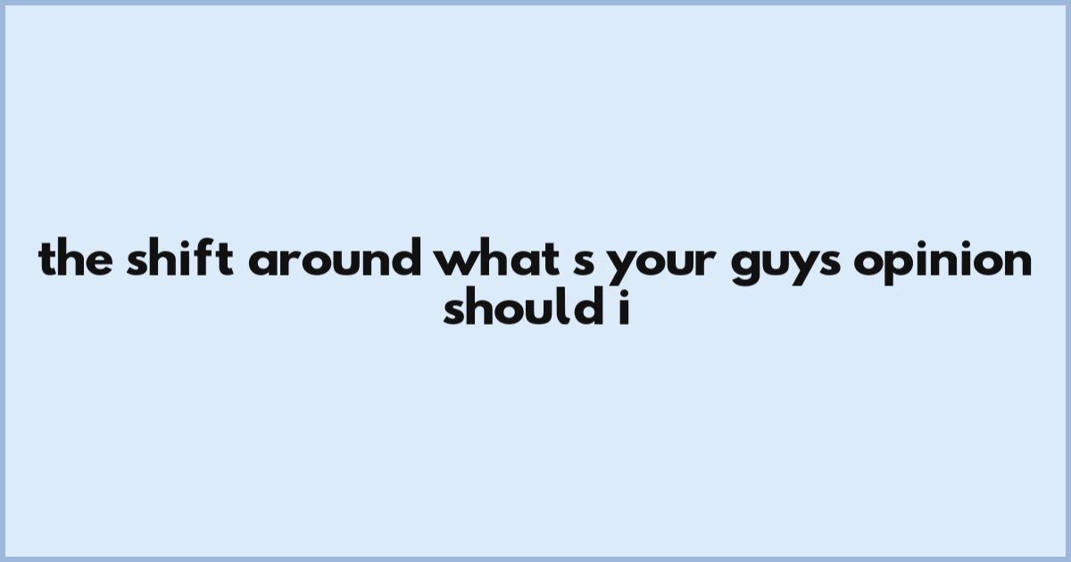 The Shift Around What’s Your Guys Opinion? Should I