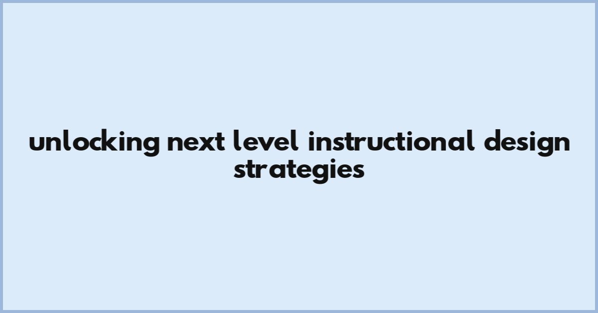 Unlocking Next-Level Instructional Design Strategies
